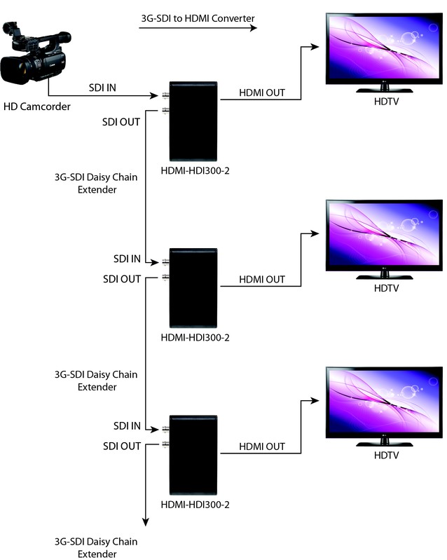 SDI to HDMI Converter with SDI Repeater (Up to 300 Meters) |