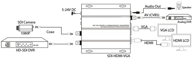 SDI to HDMI / RCA / VGA out Converter with Loop Out |