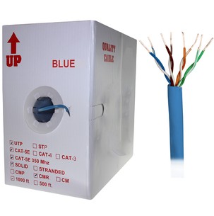 1000ft Bare Copper 24AWG CMR UTP Cat5e Bulk Cable, 350MHz, Solid Wire - |
