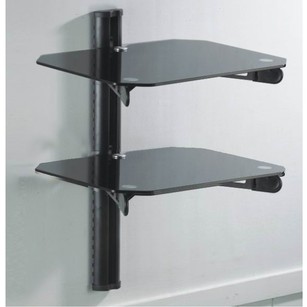 Mount all of your audio video devices with Aios professional wall mount shelf bracket. Wall mount shelf brackets are designed to clean and organize your home theater setup by mounting the shelf on the wall and running your wires through the bracket to your television. The bracket provides 2 shelf spaces to place your audio video devices. The shelves are made with 6mm black tempered glass and it reenforced for a sturdy and reliable base that holds up to 22 lbs. in weight. The adjustable height extension allows you to customize the spacing between the two shelves up to 23.6 inches. |