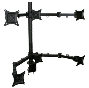 | Aios desktop mounts are professionally designed to increase the workspace on the desk, increasing organizational and productivity potential. These mounts are easy to install and to mount your LCD onto. Additionally, the proper use of this mount will not damage the desk. Under certain instances, the use of one LCD may not be enough. This particular desktop mount allows you to attach six LCDs. By adjusting height and angle, rotate your LCD's visual range to provide an ergonomic environment ideal for the user |