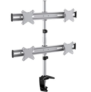 | Aios desktop mounts are professionally designed to increase the workspace on the desk, increasing organizational and productivity potential. These mounts are easy to install and mount your LCD onto. Additionally, the proper use of this mount will not damage the desk. Under certain instances, the use of one LCD may not be enough. This particular desktop mount allows you to attach four LCDs. By adjusting height and angle, rotate your LCD's visual range to provide an ergonomic environment ideal for the user. |
